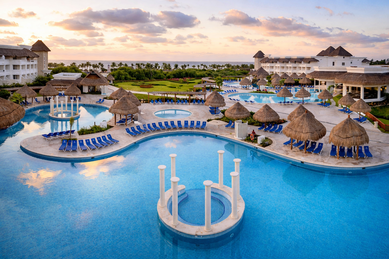 El Hotel Grand Sunset Princess, ubicado frente a las paradisíacas playas de la Riviera Maya, es un resort Todo Incluido ideal para disfrutar del Caribe mexicano rodeado de naturaleza tropical. Este complejo ofrece una experiencia perfecta para viajar en pareja, con amigos o en familia, combinando confort, entretenimiento y un servicio de alta calidad. Sus amplias instalaciones incluyen espectaculares piscinas, restaurantes temáticos, bares, actividades recreativas y acceso directo a la playa. Además, sus elegantes habitaciones cuentan con WiFi, televisión satélite, minibar, aire acondicionado y balcón o terraza, creando el ambiente perfecto para descansar y vivir unas vacaciones inolvidables junto al mar Caribe.